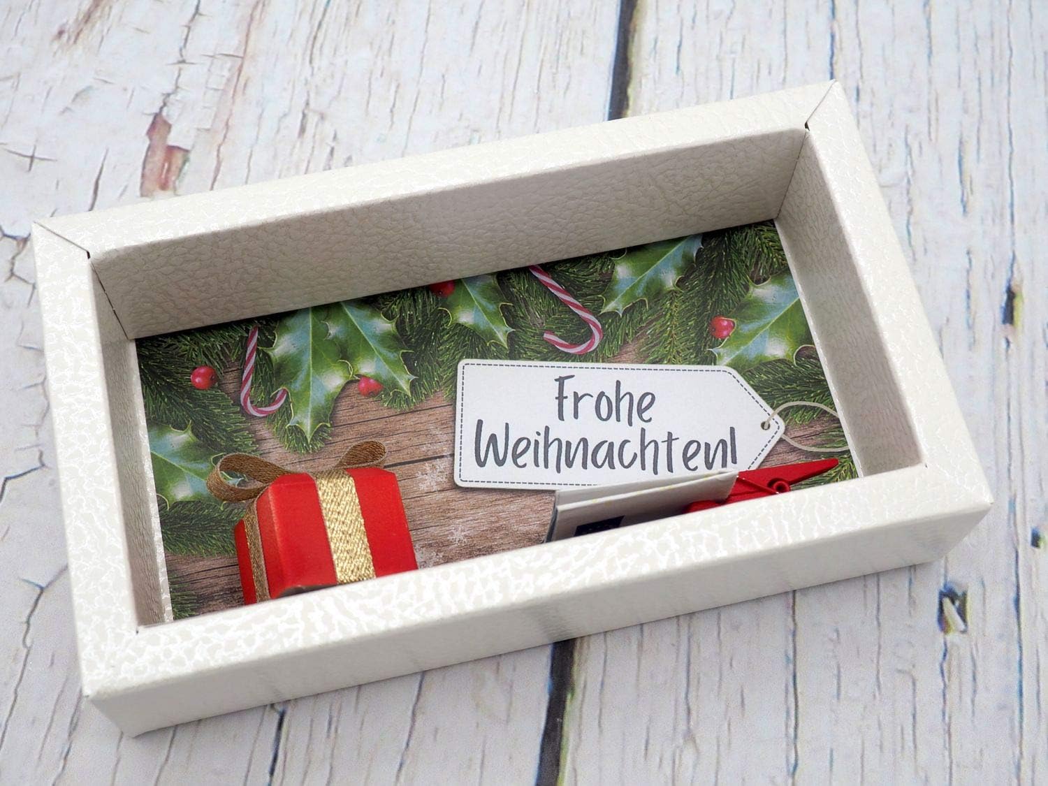 Mit der richtigen Verpackung machen Geldgeschenke zu Weihnachten viel mehr her und zaubern garantiert ein Lächeln ins Gesicht Wir präsentieren Ihnen mehrere Ideen für Weihnachtspräsente mit persönlicher Note, mit denen Sie einen Volltreffer landen. Nachricht bezieht sich auf dieses Produkt Dem Empfänger mitteilen, dass sich die Nachricht auf das aktuelle Produkt (Geldgeschenk Weihnachten, GeldbörseGeldkarte,GlückwunschKarte,Verpackung,Weihnachtskarte,Weihnachtsgeschenk, Frau,Kind,Weihnachten,Handschuh,Börse,GeschenkGeld,Mann) bezieht. So können Sie Geldgeschenke zu Weihnachten verpacken Geldgeschenke zu Weihnachten eignen sich hervorragend, um sie in einem hübschen Bilderrahmen zu verschenken Da sie sehr flach sind, können sie unter Glas verpackt werden und halten besonders fest.