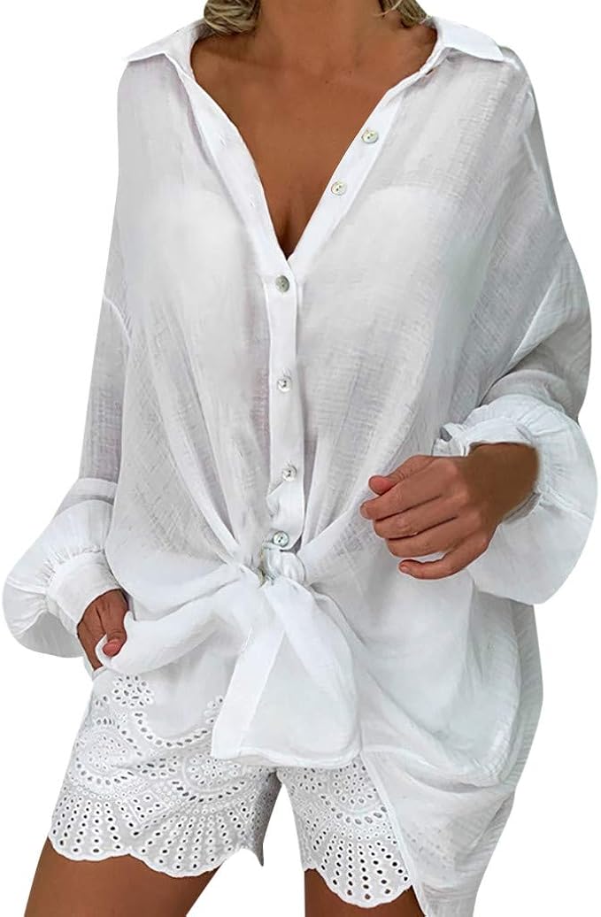 Lulupi Leinenhemd Damen Langarm Longbluse Grosse Grosse Oberteile Baumwolle Und Leinen Freizeithemd Casual Einfarbig Button Down Bluse T Shirt Amazon De Bekleidung
