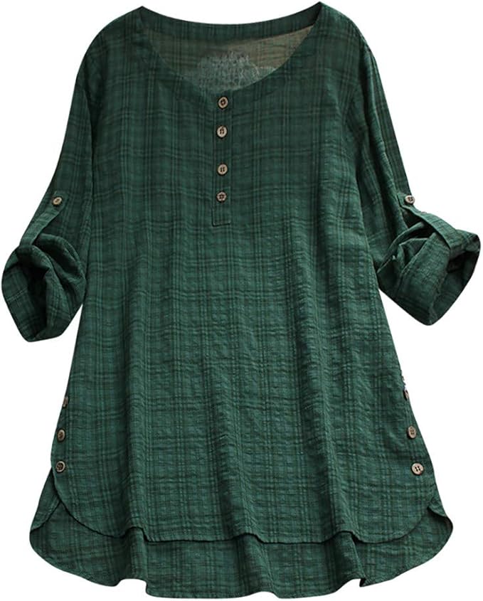 Lopily Basic Leinen Blusen Damen Grosse Grossen Karierte Hahnentritt Bluse Elegante Oberteile Fur Freizeit Langarm Shirts Fur Mollige Knopfen Tunika Gr 50 Long Shirts Damen Herbst Grun 44 Amazon De Bekleidung