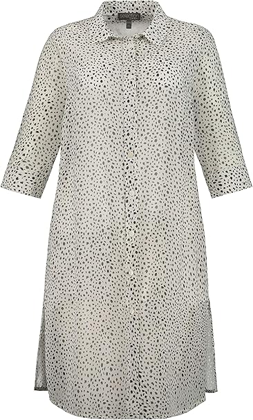 Ulla Popken Damen Grosse Grossen Longbluse Transparent Mit Pinseltupfen 3 4 Armel Selection Ulla Popken Amazon De Bekleidung