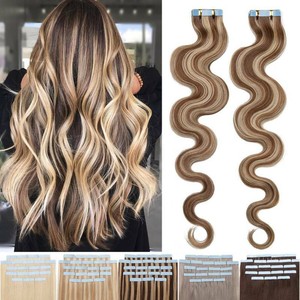 Hetto Tape In Haarverlangerung Remy Extensions Skin Weft Naturwelle 14 Zoll 4 Dunkelbraun Mit 27 Karamellblond pcs 40g Tape Extensions Echthaar Amazon De Beauty