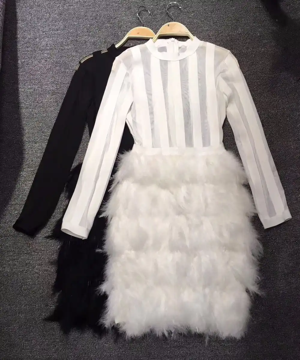 Schwarz Und Weiss Farbe Damen Hl Verband Kleid Feder Sexy Minikleid Bodycon Langarm Club Night Kleid Bandage Dress Hl Bandage Dressmini Dress Aliexpress
