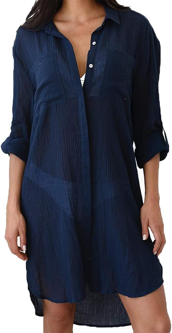Aemilen Blusenkleid Damen Weiss Hemdkleid Langarm Strandponcho Strand Chiffon Bluse Tops Bikini Cover Up Strandkleid Sommer Bademode Amazon De Bekleidung