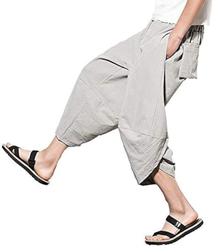 Herren Herren Retro Haremshose Pumphose Lose Freizeithose Elastisch Taille Leichte Leinenhose Mit Kordel Bekleidung Simgeik Com