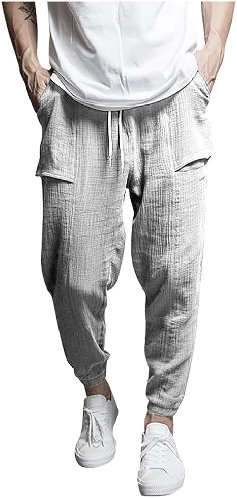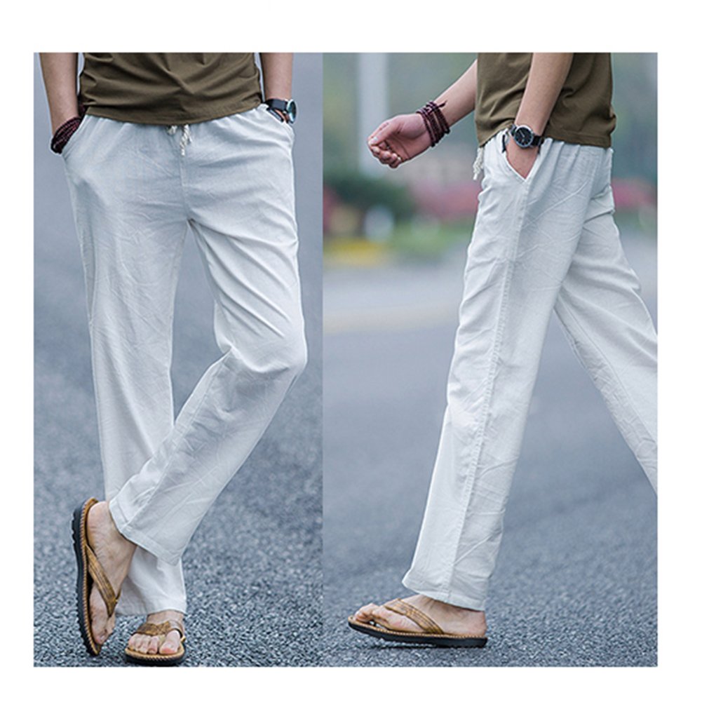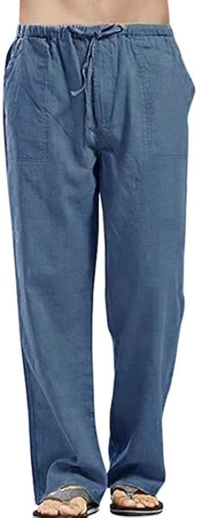 Hosen Herrenmode Herren Leinenhose Freizeithose Leichte Sommer Yoga Leinen Hose Lockere Stoffhose Kleidung Accessoires Herrenmode