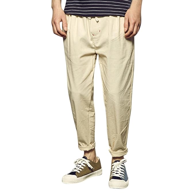 Huicai Herrenhosen Manner Casual Leinenhose Leichte Elastische Bund Gurtel Slim Fit Jogginghose Trainingshose Sommer Ho Herren Hosen Lassiger Mann Leinenhose