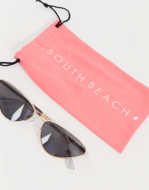 South Beach Exklusive Schmale Katzenaugen Sonnenbrille Mit Goldenem Rahmen Und Schwarzen Glasern Asos