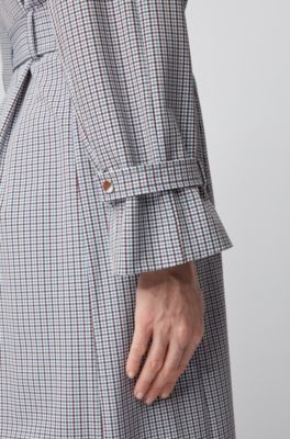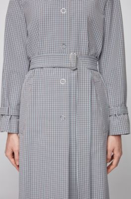 Hugo Double Breasted Trench Coat In Glen Check Fabric