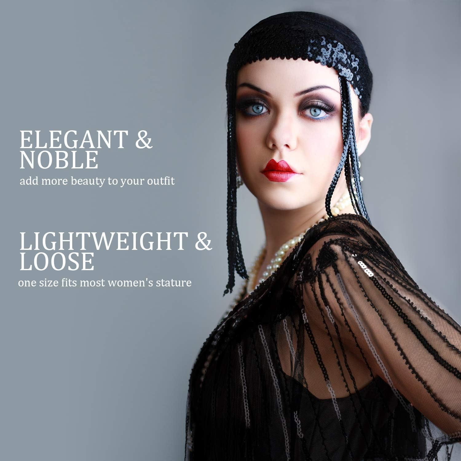 Schals Satinior Damen 19er Jahre Pailletten Schal Wrap Brautschal Aufdecken Perlen Abend Umhang Schwarz Mit Vertikalen Streifen Bekleidung