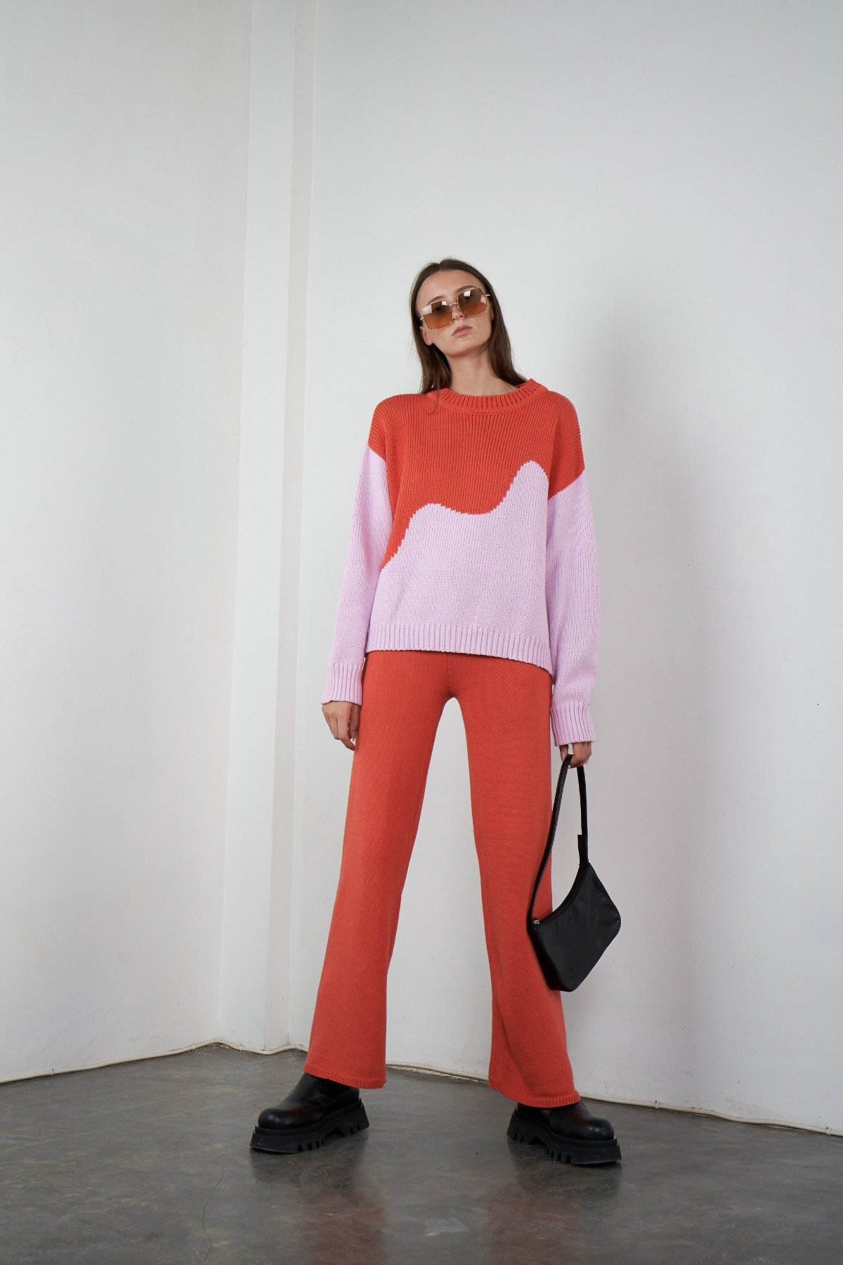 Pink Color Block Oversized Pullover Knit Sweater Modeshe Com