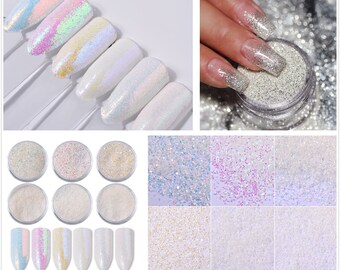 Meerjungfrau Glitzer Pulver Fur Nagel In Weiss Glitternagelkunst Weisse Nageldesigns Weisse Nagel