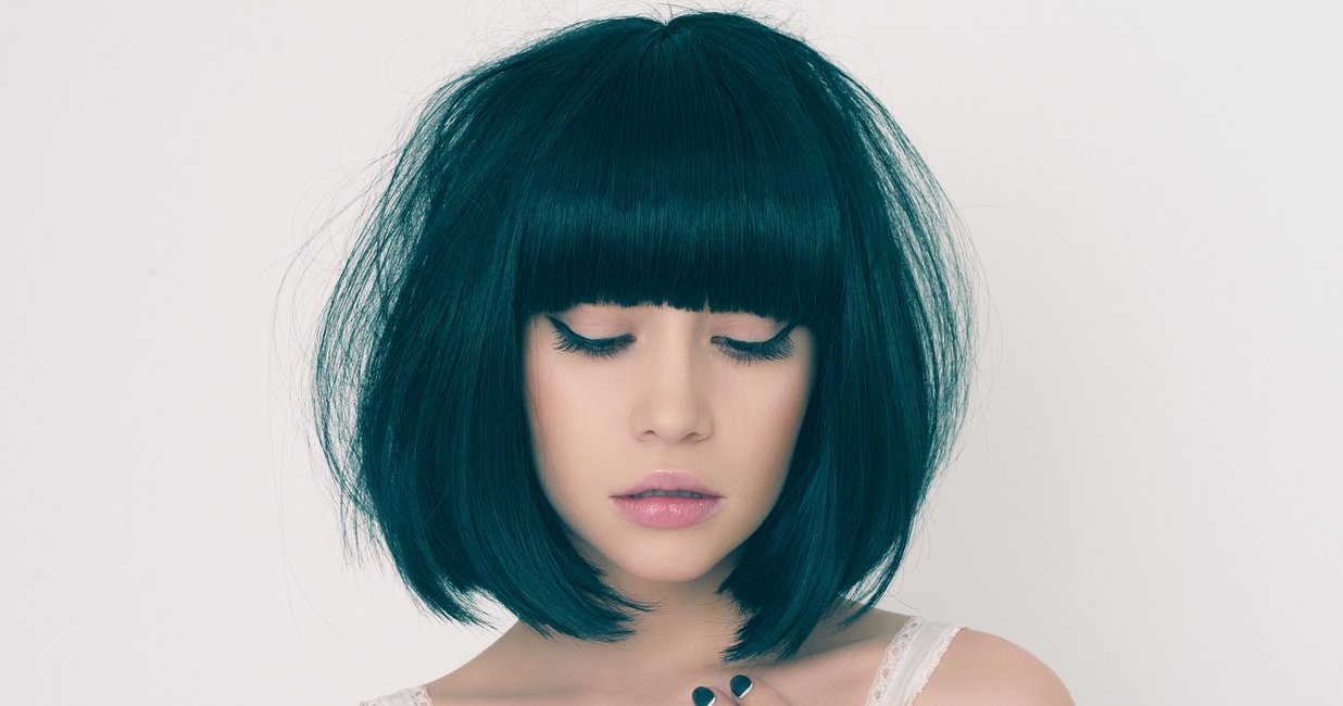 Schwarz Blaue Haare Mit Kurzem Bob Haarschnitt Schwarze Haare