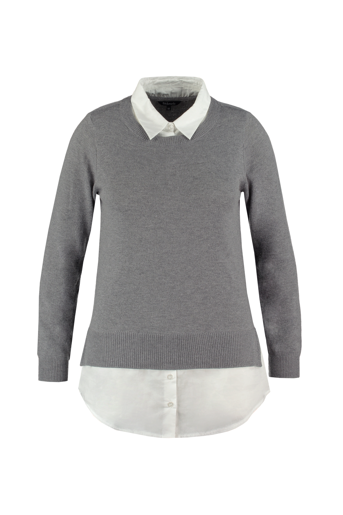 Damen Pullover Mit Blusenkragen Grau Official Ms Mode Online Store