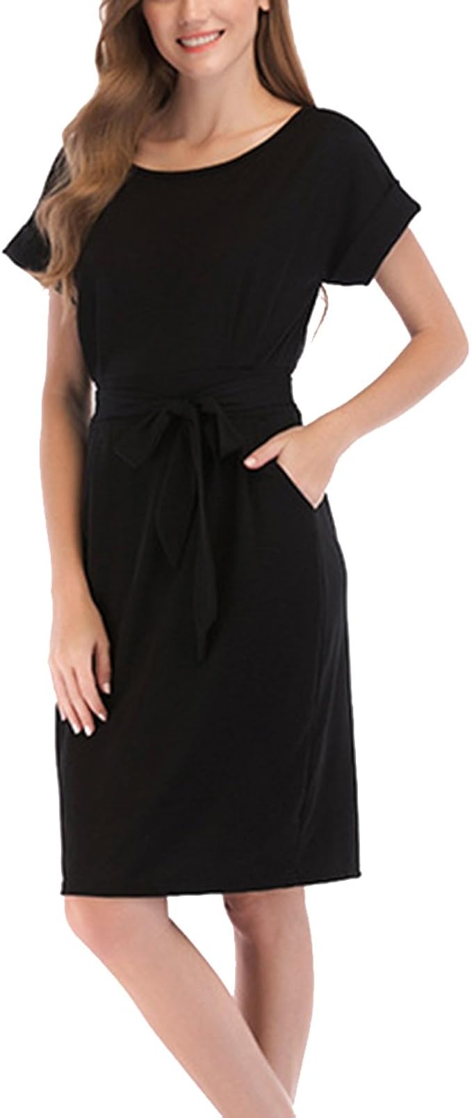 Angenehm schickes, leichtes Kleid Oh snap!. KRISP 3269BLK18 Damen Leichtes Kleid (Schwarz, Gr46) Schlichtes, bequemes und locker fallendes Boho Maxi Kleid aus Jersey Modelle 3269, 5081, 32 Kurze breite Ärmel oder ärmellos, hoher Bund mit Gummizug, weiter Schnitt. Kurz & Bodenlang ?.