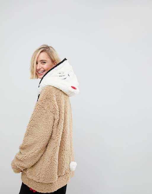 Hello Kitty X Asos Jacke Aus Teddyplusch Mit Kapuzendetail Asos