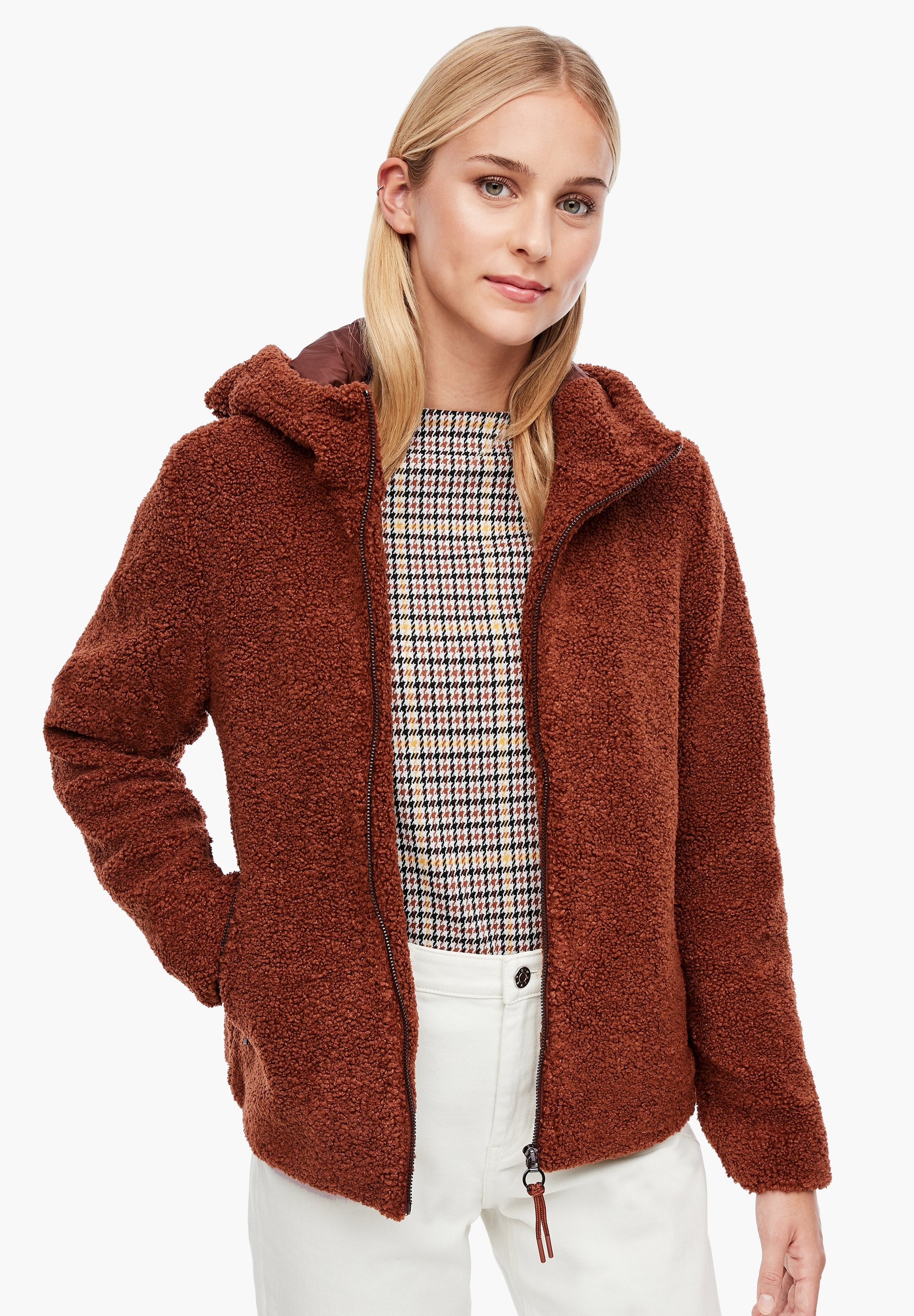 S Oliver Aus Teddy Plusch Fleecejacke Brown Braun Zalando De