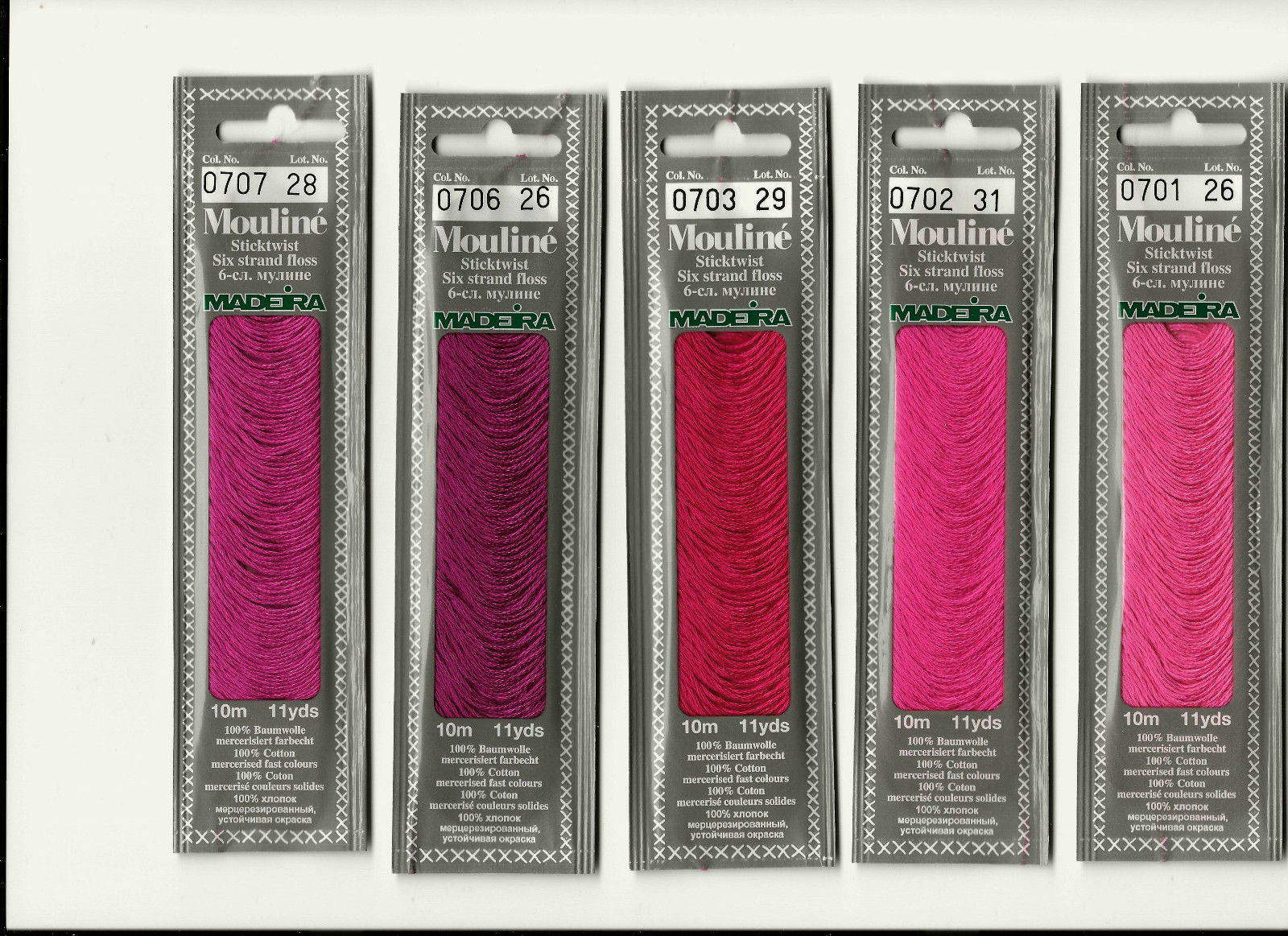 0313 0314 0401 0403 0404 340 341 5975 338 868 1021 919 918 30 356 3778 0703 0704 0705 0706 0707 1029 3804 600 915 1007 1008 1009 1012 127 152. A high quality overlocking thread on 2500m (2740yd) cones Madeira Aerolock is one of the world's leading machine overlocking threads It is suitable for use in all home overlockers, coverlockers or sergers It is ideal for finishing off seams when dressmaking or sewing household projects such as curtains, cushions, duvet covers, etc. MADEIRA’s stylish 6 strand cotton floss is made from finest high quality long staple Egyptian cotton Absolutely effortless to strand, Mouliné is a pleasure to work with and ideal for traditional needlework activities Mouliné is the preferred choice for classical cross stitch, satin stitch, shadow embroidery, the number one choice for hand embroidery and smocking.