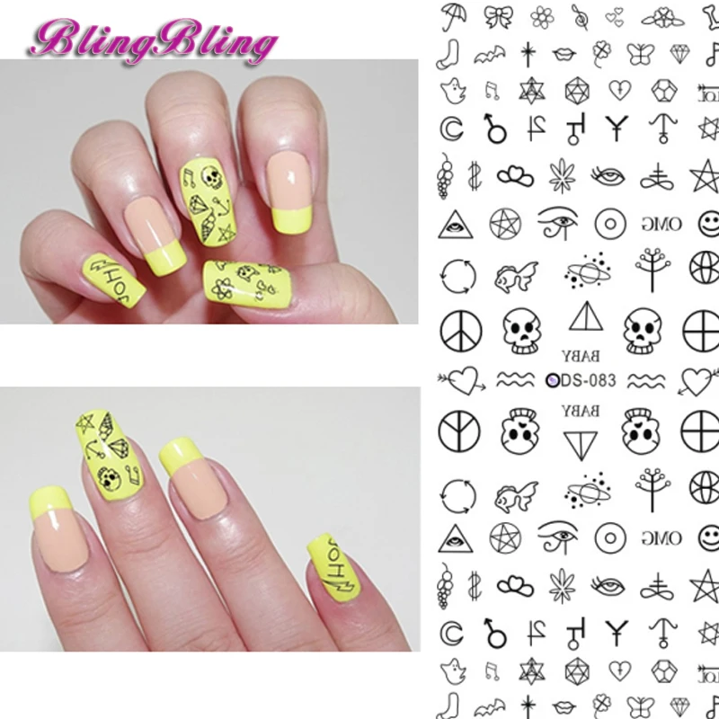 2 Blatt Nagel Nagel Wasser Abziehbilder Schwarze Schadel Symbole Nette Nail Art Aufkleber Tattoo Aufkleber Wasserrutsche Dekoration Nail Water Decals Water Decalsdecal Water Aliexpress