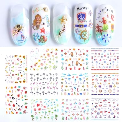 Nagel Sticker 11 Stucke 3d Nail Art Aufkleber Coconut Tree Nail Folie Seaside Series Aufkleber Manikure Nail Art 16x25 5cm Amazon De Sport Freizeit