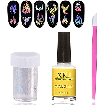 Kalolary Nail Art Transferfolie Flamme Nagel Transferfolie Aufkleber Set Mit Nail Art Foil Gelkleber Holographische Laser Nail Diy Dekoration Uv Led Lampe Erforderlich Amazon De Beauty