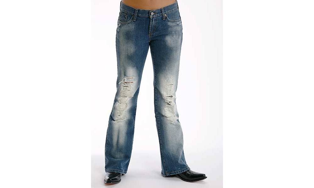 Stetson Ladies Destructed Whiskey Wash Denim Flared Leg Jeans