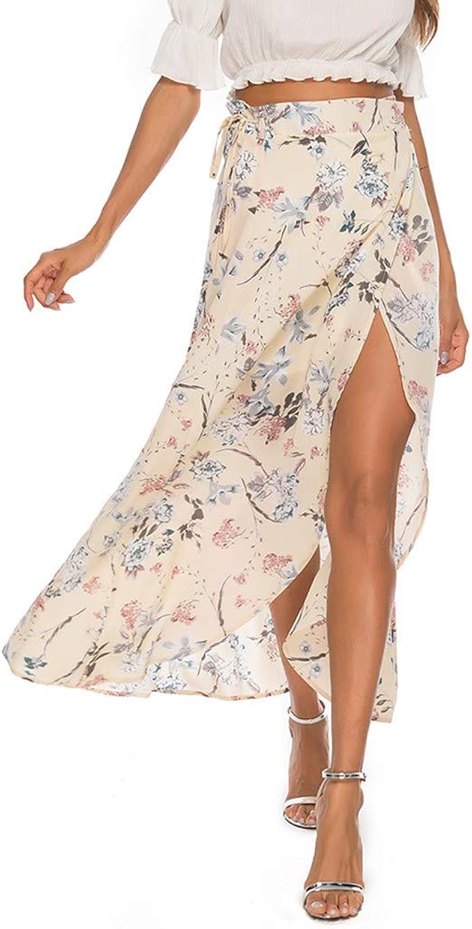 Missy Chilli Damen Lang Rocke Sommer Elegant Blumen Chiffon High Waist Boho Maxi Beach Skirt Rocke Mit Schlitz Rosa Amazo Rock Mit Schlitz Langer Rock Chiffon