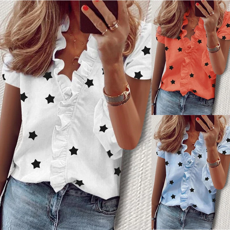 Sterne Sommer Bluse Frauen Shirts Kurzarm Bluse Shirt Elegante Mode Ruschen V Neck Frauen Tops Und Bluse Tunika Neue Blusen Hemden Aliexpress