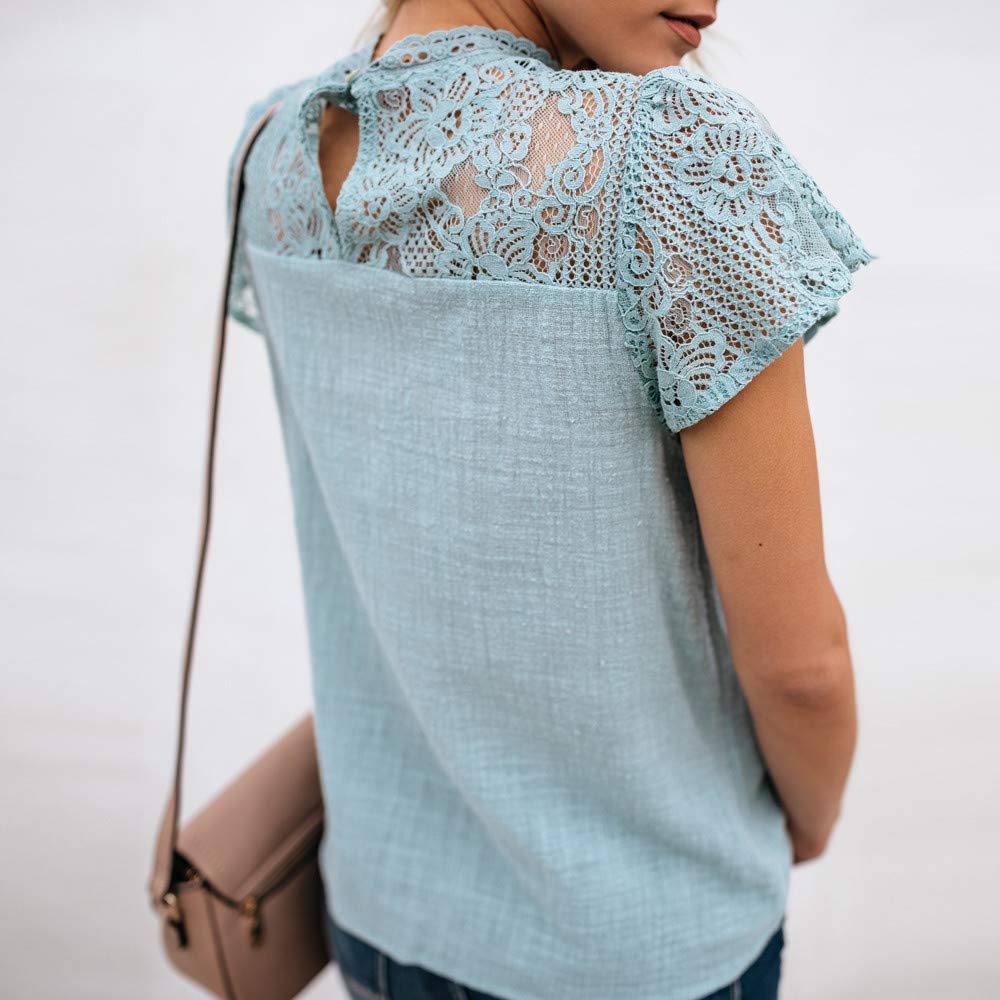 Tifiy Womens Casual Spitze Patchwork Flare Ruschen Kurzarm Sommer Cute Floral Shirt Lose Bluse Top Damenblusen Bluse Modestil