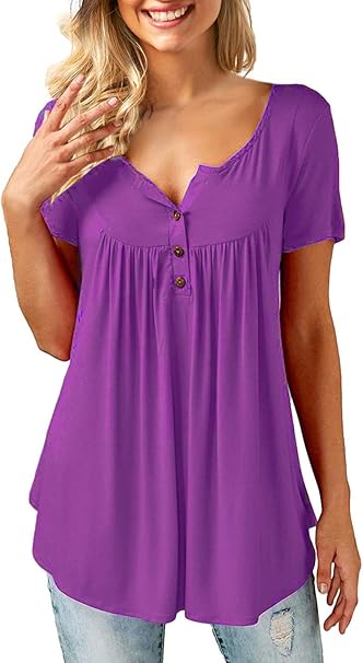 Kissmoda Damen Shirts Kurzarm Tunika Tops Ruschen Einfarbige Blusen Tops T Shirts Blusen Blusen Tuniken