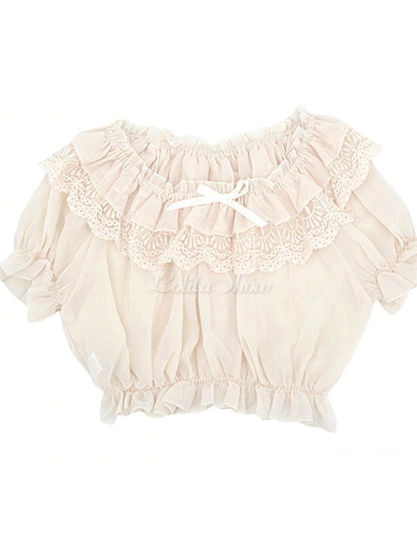 Sweet Lolita Blusen Spitzenbogen Ruschen Kurzarm Lolita Top Lolitashow Com