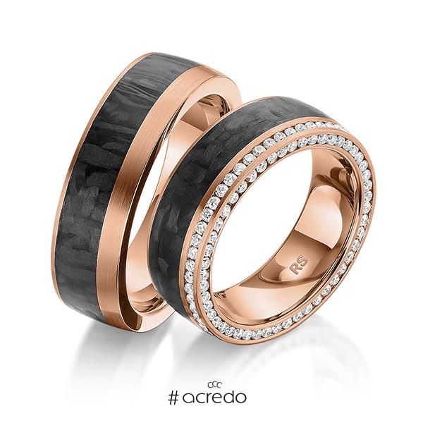 Paar Carbon Trauringe Eheringe In Rotgold 585 Rotgold 585 Mit Carbon Einzug Weissgold 585 Mit Zus 0 056 Ct Brillant Tw Si Von Acredo S 1196 13