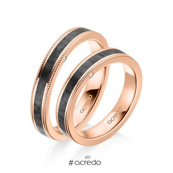 Paar Carbon Trauringe Eheringe In Rotgold 585 Mit Carbon Einzug Mit Zus 0 065 Ct Brillant Tw Si Von Acredo S 1175 4