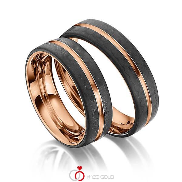 Paar Carbon Trauringe Eheringe In Rotgold 585 Carbon Einzug Von 123gold