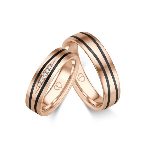 Paar Carbon Trauringe Eheringe In Rotgold 585 Rotgold 585 Carbon Einzug Mit Zus 0 02 Ct Brillant Schwarz Von 123gold