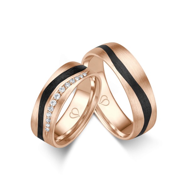 Eheringe und Trauringe aus Gold Individuell konfigurierbar und 100 % Made in Germany Beste Qualität zum besten Preis Jetzt entdecken!. Diese Eheringe werden aus 585 Rotgold und Carbon angefertigt Der Damenring wird mit 0,0 ct ct G/SI Brillanten gefasst Breite 6 mm Stärke 1,8 mm. Dabei werden diese Bicolor Traumringe speziell für Ihre Trauung in unserer GoldschmiedeWerkstatt vollendet!.