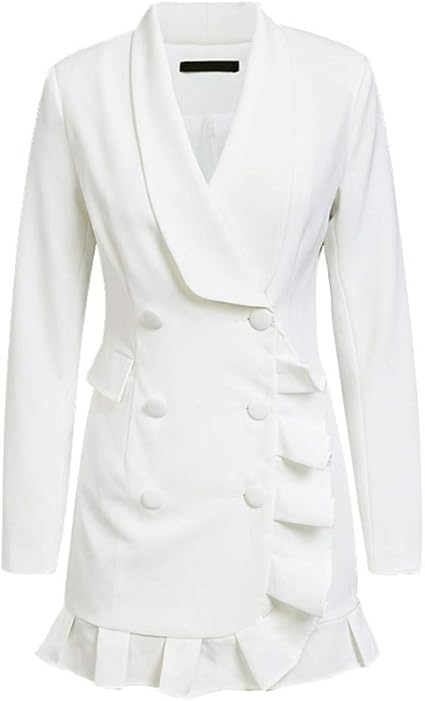 Vkreal Mantel Damen Trenchcoat Elegante Ruschen Zweireiher Lange Frauen Mantel Lassige Weisse Blazer Buro Herbst Winter Schlanke Anzug Damen L Amazon De Sport Freizeit