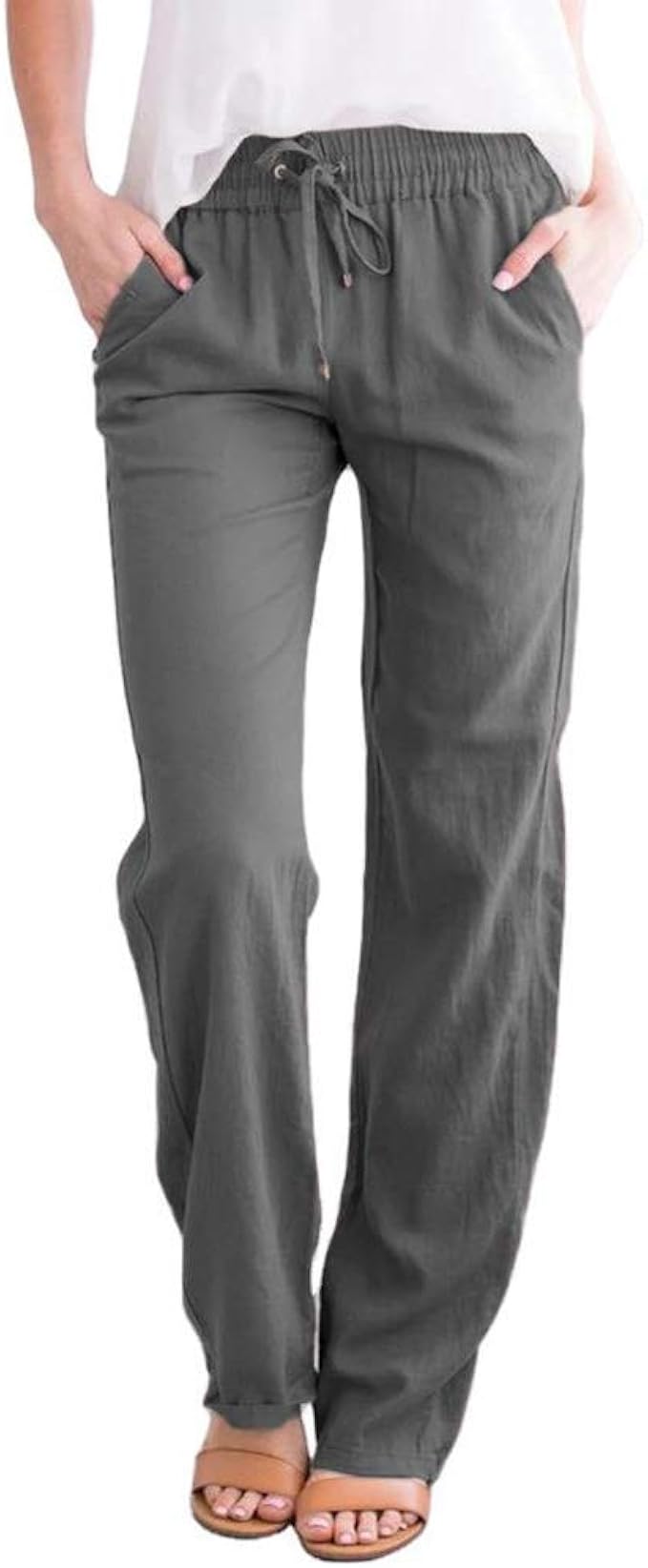 Njxm Jogginghose Leinenhose Damen Baumwolle Freizeithose Weite Bein Hohe Lose Hose Schlaghose Mit Damen Baumwolle Leinenhose Dunkelgrau Xl Amazon De Bekleidung