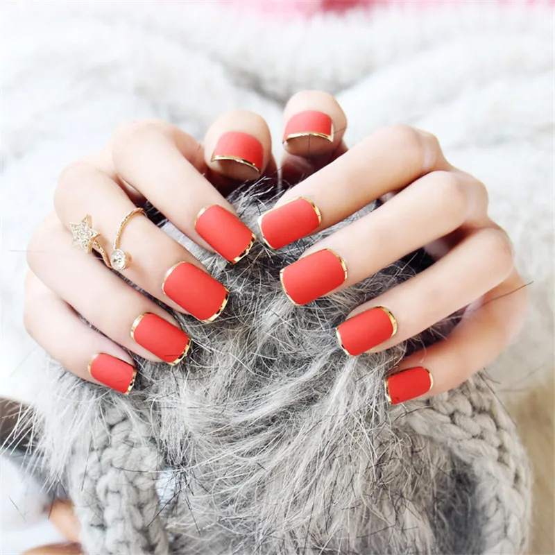 24 Stucke Matte Blau Rosa Rot Gefalschter Nagel Edle Gold Line Nail Art Design Kunstliche Fingernagel Falsche Nagel Fake Nail Tips Nail Tipsfull Cover False Nails Aliexpress