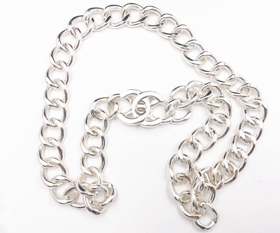 Chanel Super Seltene Oldtimer Silber Cc Turnlock Kette Gurtel Etsy