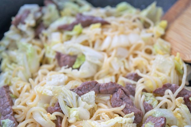 Gebratene Nudeln Mit Rindfleisch Und Chinakohl Frisch Gekocht
