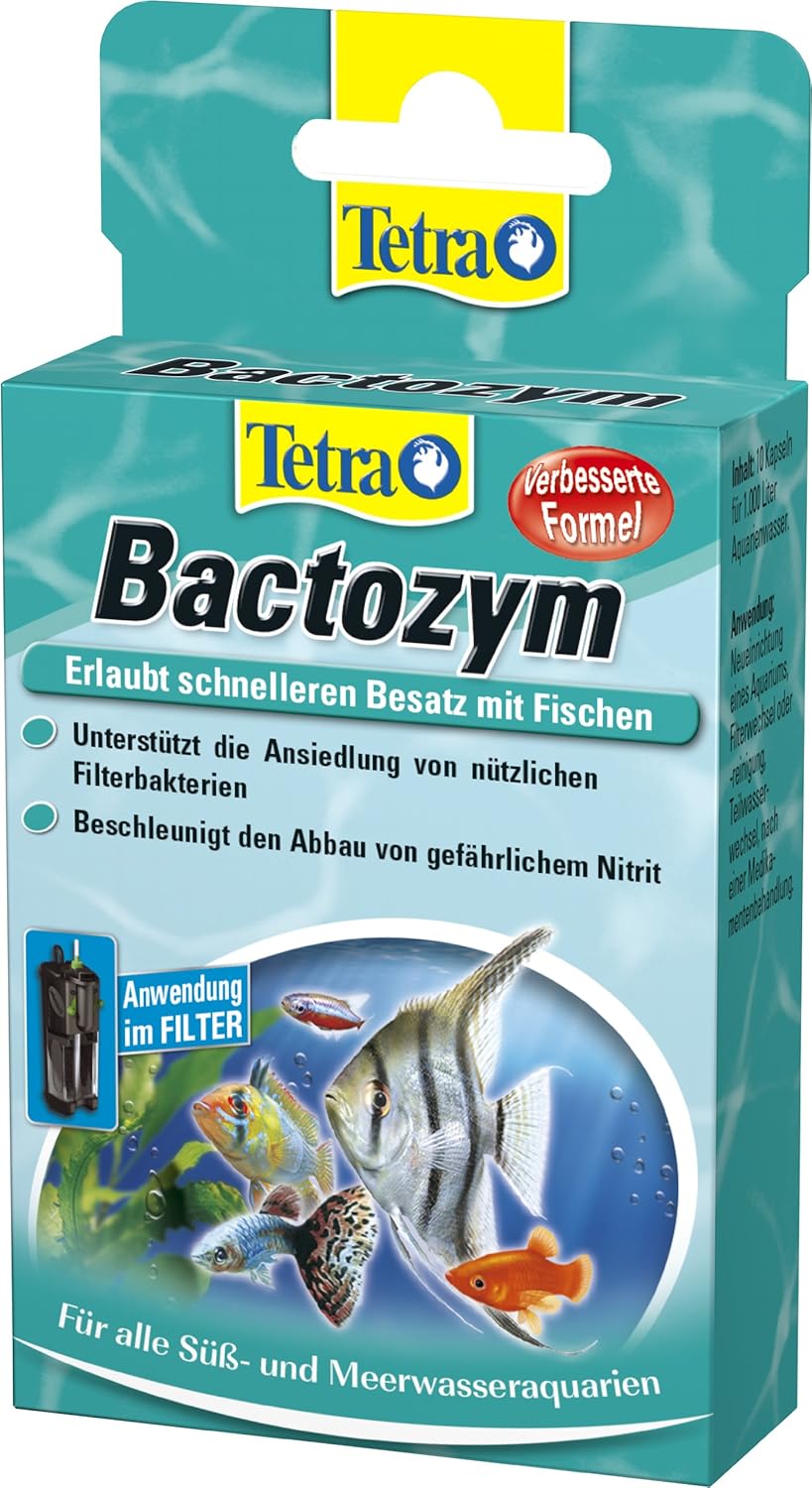 Tetra Bactozym Fur Sofortige Bioaktivitat In Filter Und Aquarium Vereinfacht Das Einfahren Von Neuen Becken Fordert Abbau Organischer Verunreinigungen 10 Kapseln Amazon De Haustier