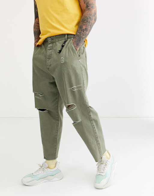 Bershka Carrot Loose Fit Jeans In Khaki Asos