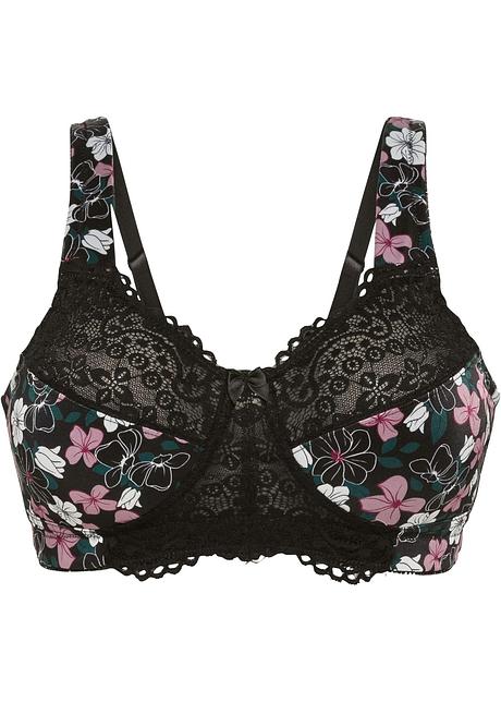 Entlastungs Bh Mit Floralem Allover Muster Schwarz Bedruckt Cup F