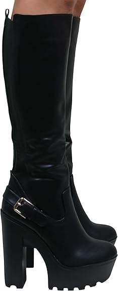 Damen Stiefel Kniehoch Plateau Blockabsatz Stretch Einsatze Sohle Gerillt Schwarz Eur 40 Amazon De Schuhe Handtaschen