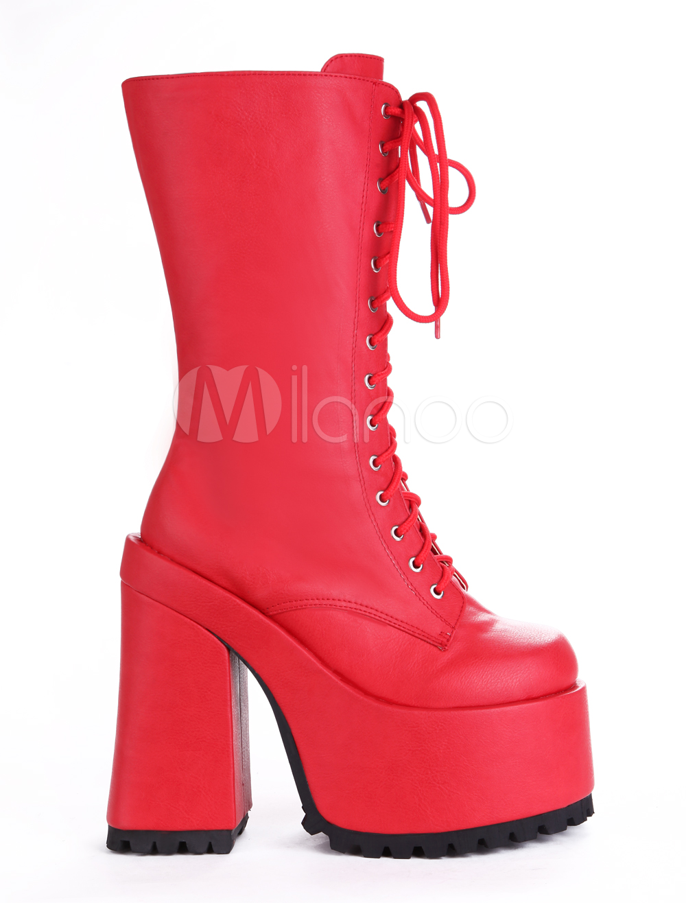 Rote Plateau Stiefel Mit Blockabsatz Und Schnursenkel Milanoo Com