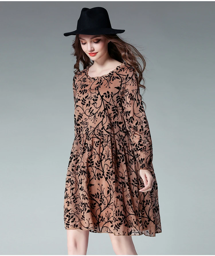 Frauen Herbst Kleid Plus Grosse 17 Neue Europaische Frau Mode Brown Langarm Blumenmuster Knielang Casual Marke Kleid Dame Aliexpress