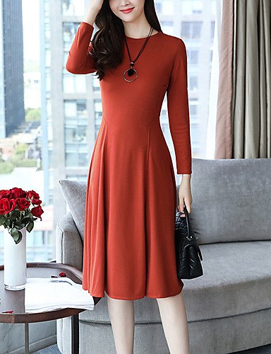 Herbst Langarm Knielange Damenkleider Gunstig Kaufen Ebay