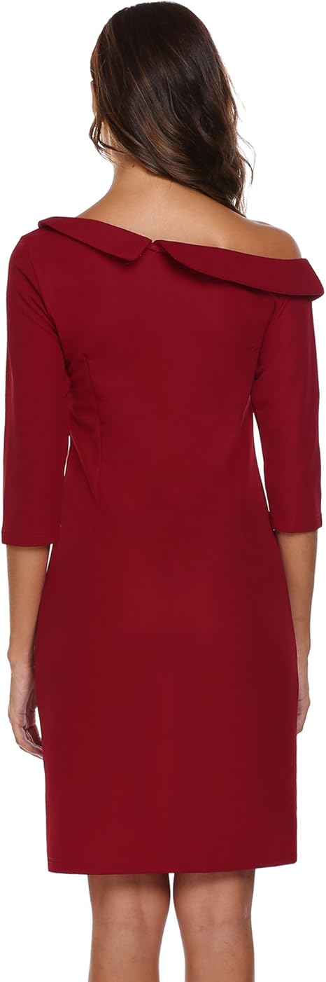 Damen Meaneor Damen Herbst Figurbetontes Etuikleid Mit Schragem Kragen 3 4 Armelliges Abendkleid Cocktailkleid Partykleid One Shoulder Kleid Knielang Bekleidung Luxdental Si