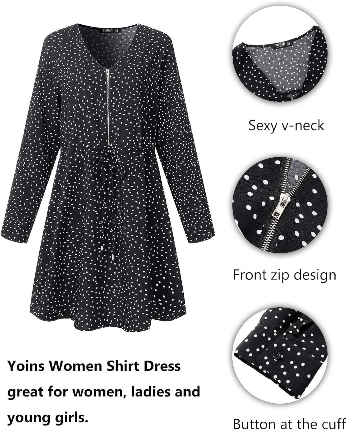 Yoins Kleider Damen Knielang Langarm Elegantes Blusenkleid Herbst Tunikakleid Winterkleid V Ausschnitt Hemdkleid Mit Gurtel