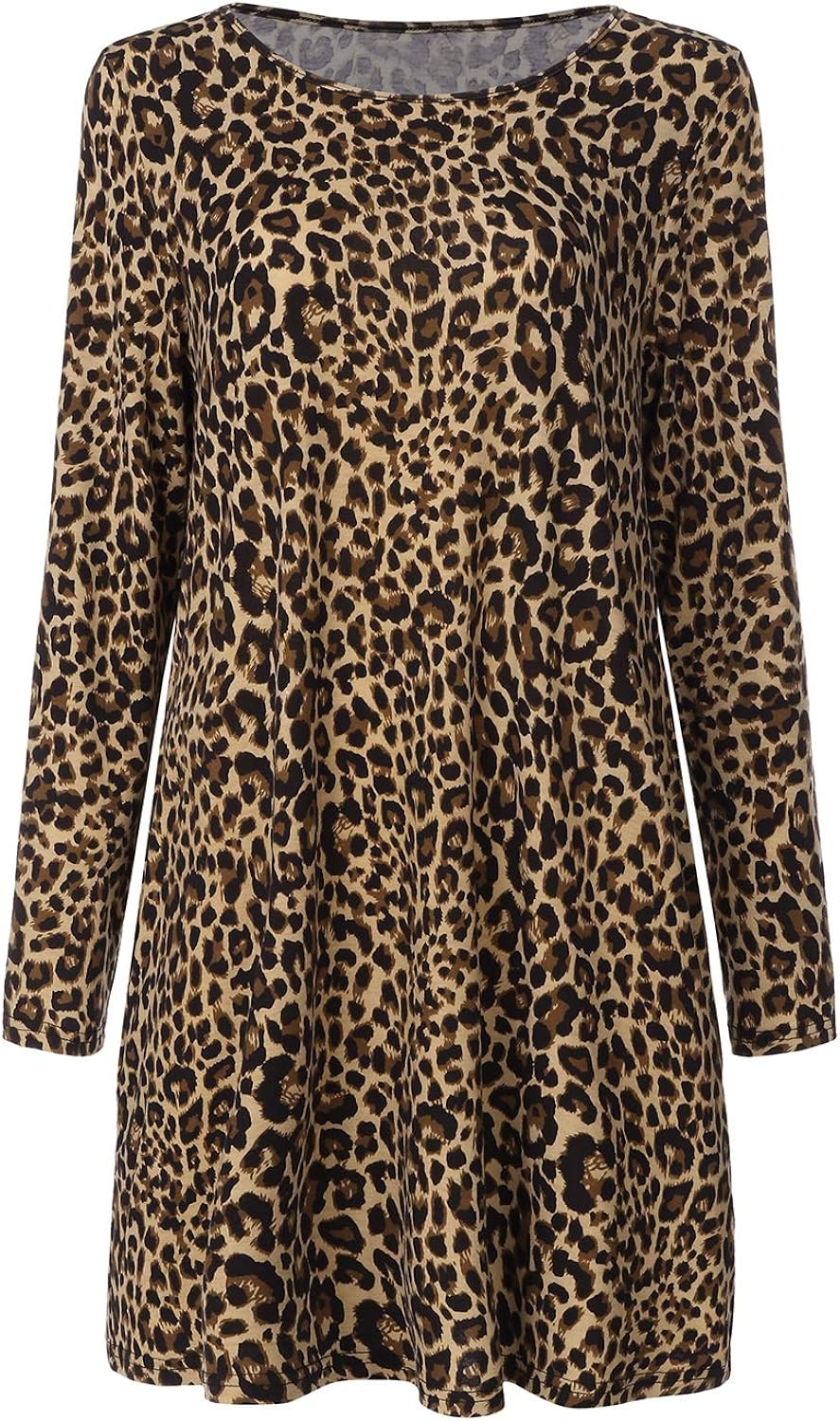 Cnfio Kleider Damen Leopard Blusenkleid Langarm Kleider Knielang Mit Tasche Sweatshirt Pullover Casual Herbst Amazon De Bekleidung